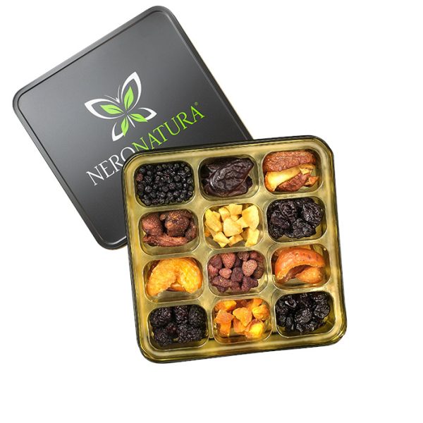 Mirtillo blu essiccato con succo di mela 50g, Prugna essiccata con succo di mela 50g, Pera essiccata con succo di mela 45g, Fragola essiccata con succo di mela 45g, Mela essiccata con succo di mela a cubi 25g, Amarena essiccata con succo di mela 50g, Pesca essiccata con succo di mela 45g, Lampone essiccato con succo di mela 50g, Mela cotogna essiccata con succo di mela 50g, Mora essiccata con succo di mela 50g, Albicocca essiccata con succo di mela a cubi 40g, Ciliegia essiccata con succo di mela 50g.