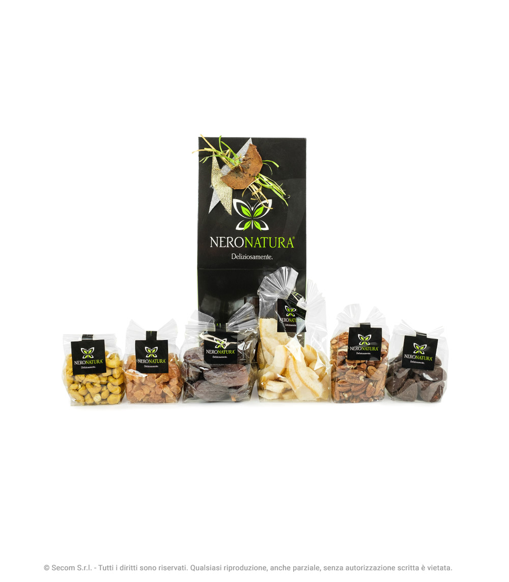 Acquista online la latta Giulia mix 8 prodotti Neronatura. INGREDIENTI Noci pecan alla paprika affumicata 50g, Fragola ricoperta di cioccolato 70g, Mandorle tostate al rosmarino 70g, Dragèes di nocciola Piemonte IGP (cioccolato al latte/fondente/bianco) 70g, Anacardi tostati al curry 70g, Albicocche ricoperte di cioccolato 80g, Noci Amazzonia al Baharat 70g, Dragèes di mandorle Italia (cioccolato al latte/fondente/bianco) 70g. ORIGINE Paesi di origine dei singoli prodotti.