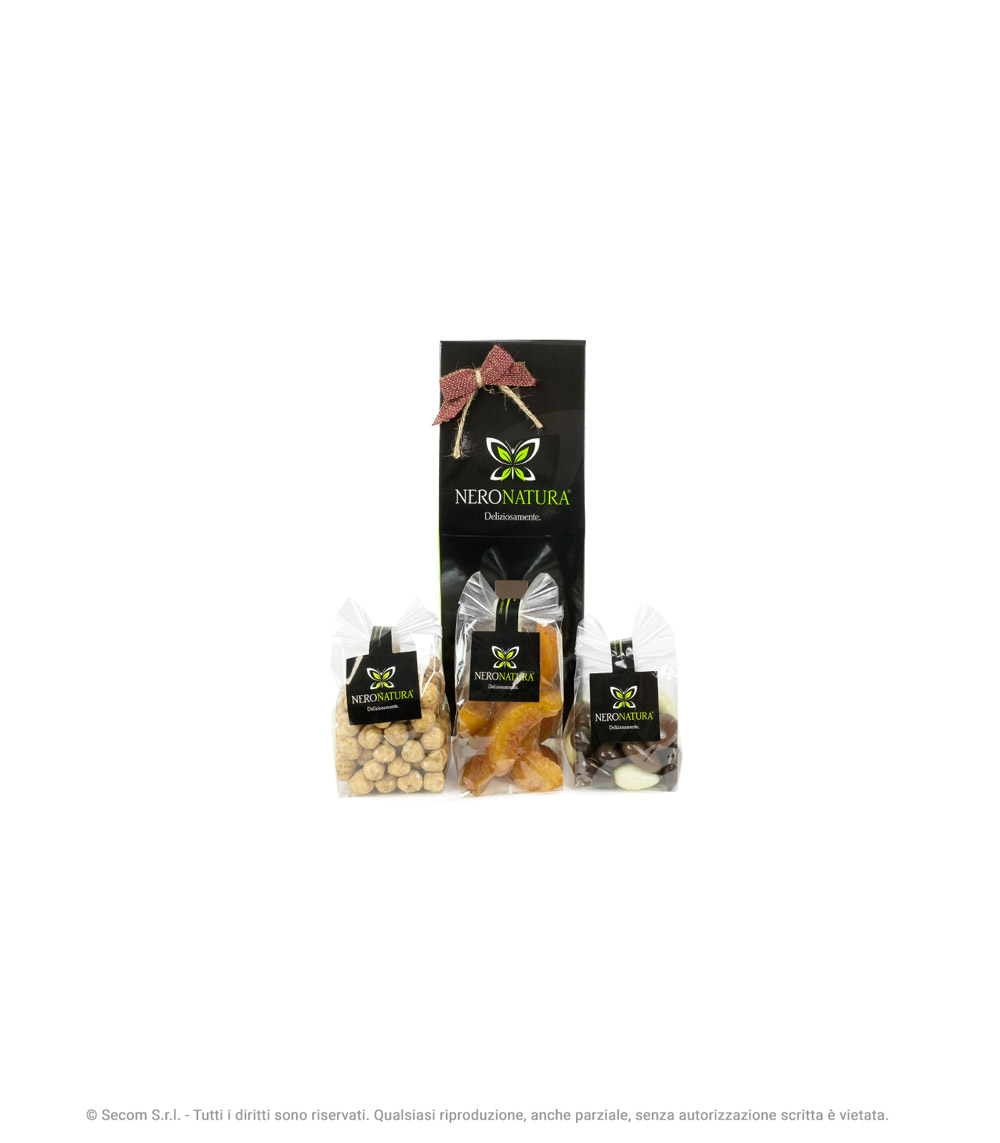 Acquista online la latta Giulia mix 8 prodotti Neronatura. INGREDIENTI Noci pecan alla paprika affumicata 50g, Fragola ricoperta di cioccolato 70g, Mandorle tostate al rosmarino 70g, Dragèes di nocciola Piemonte IGP (cioccolato al latte/fondente/bianco) 70g, Anacardi tostati al curry 70g, Albicocche ricoperte di cioccolato 80g, Noci Amazzonia al Baharat 70g, Dragèes di mandorle Italia (cioccolato al latte/fondente/bianco) 70g. ORIGINE Paesi di origine dei singoli prodotti.